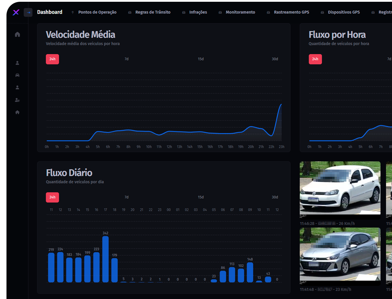 Monitoramento do tempo de permanência do veículo dentro do condomínio com alertas em caso de detecção de tempos excedidos.